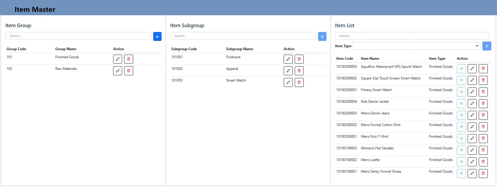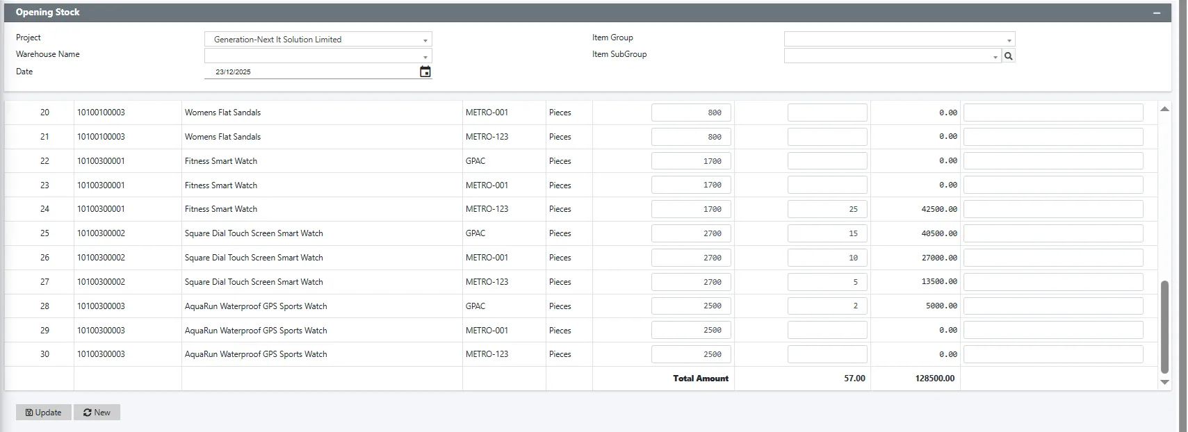 Item Master & Opening Stock