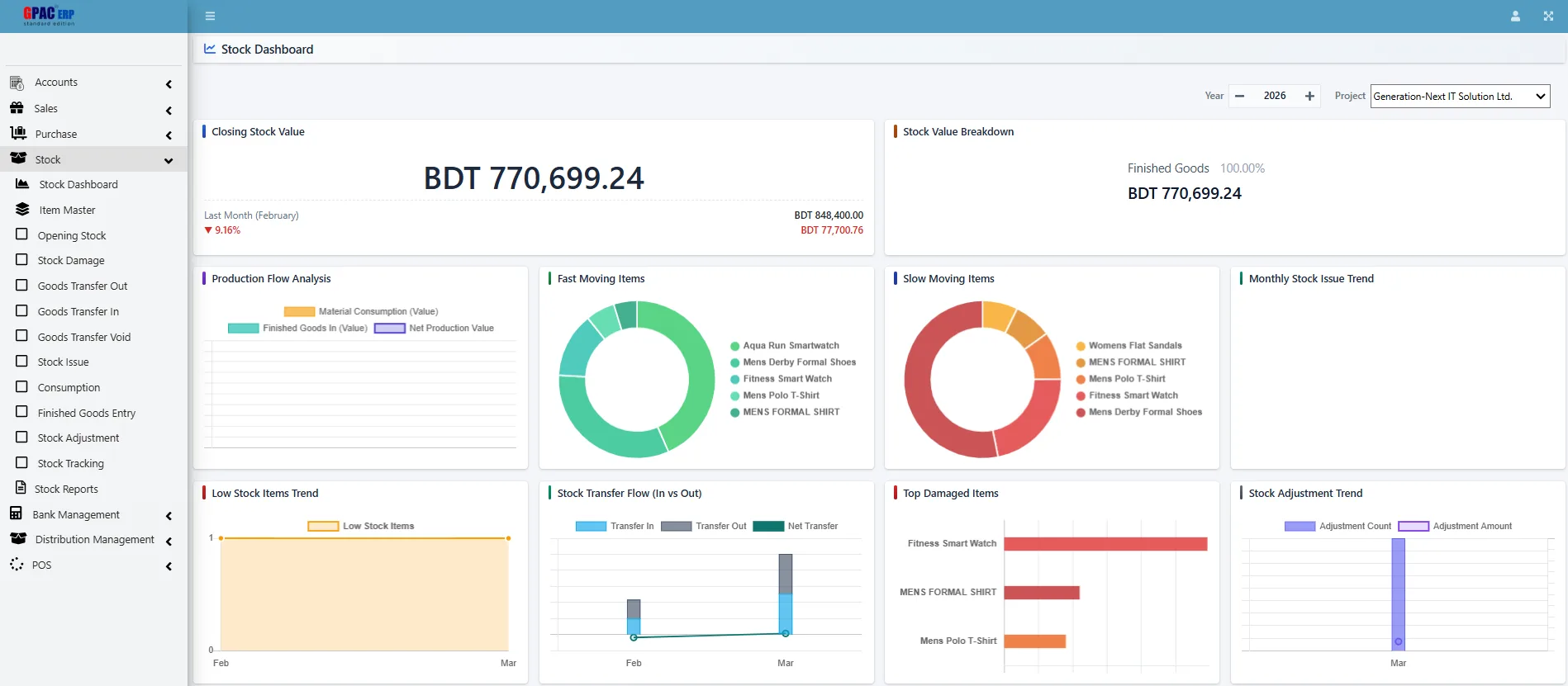 Explore the complete Stock workflow in GPAC ERP—from Stock Dashboard and Item Master to Opening Stock, Goods Transfer, Stock Adjustment, and final Reports—keeping inventory accurate, traceable, and always up to date.